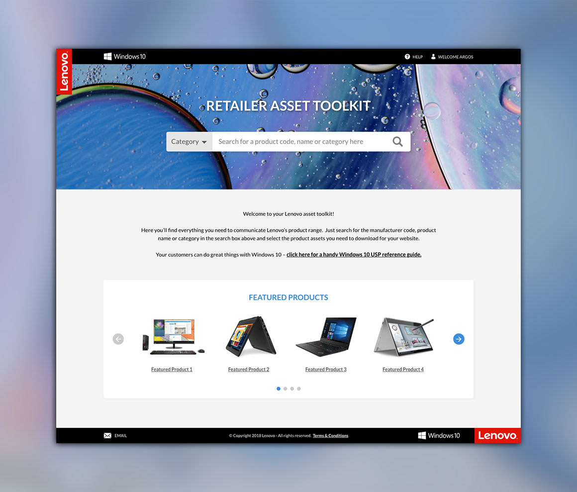 Our team created an asset portal for Lenovo employees and their business partners to easily search and download images of Lenovo products, to be used for marketing purposes.