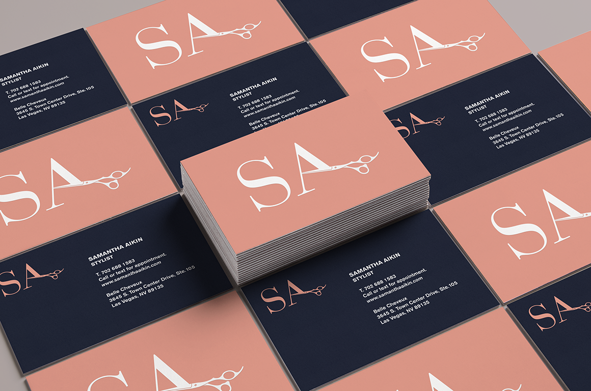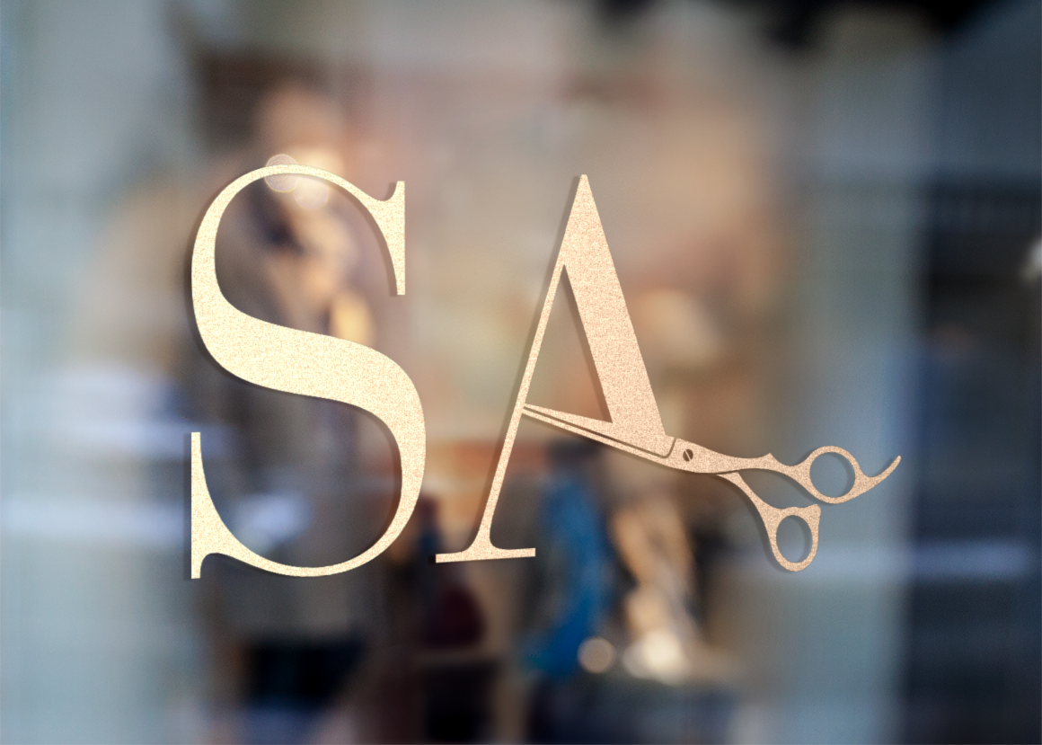 I designed a simple, clean and modern logo for a hair stylist, using her initials with scissors as the stroke in the letter A.